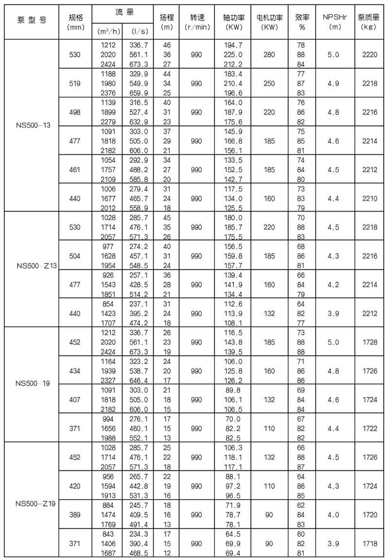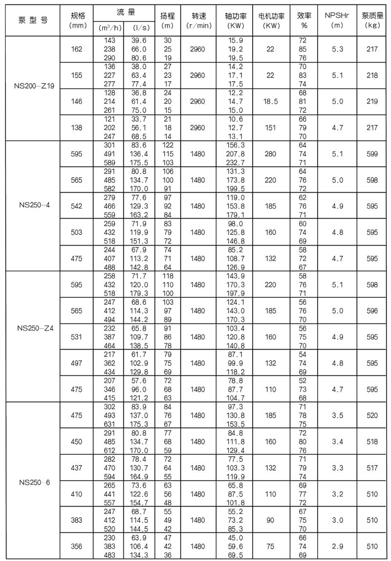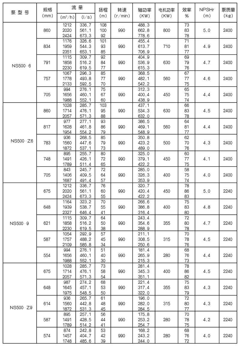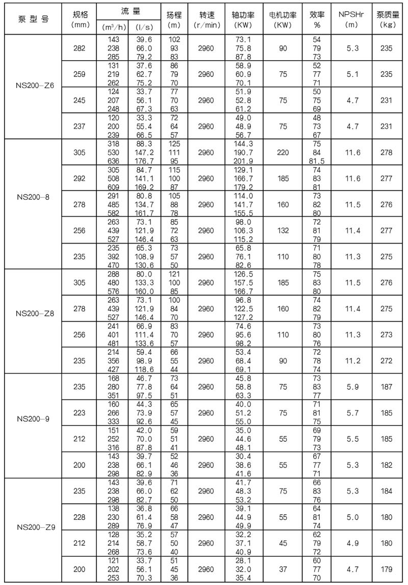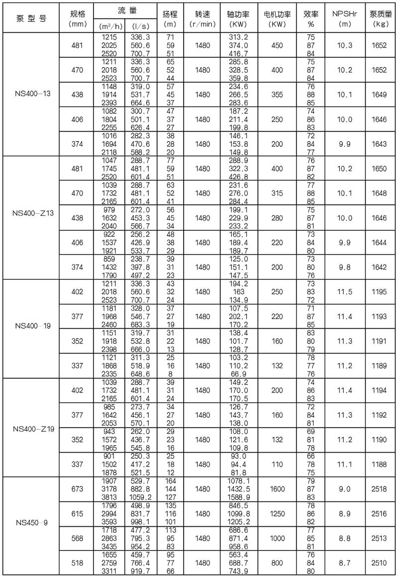NS型單級雙吸中開式離心泵是我公司總結(jié)國內(nèi)外優(yōu)秀水力模型,廣泛吸收國內(nèi)外同類產(chǎn)品先進的設(shè)計制造技術(shù),根據(jù)國內(nèi)市場實際需要開發(fā)的新型中開式雙吸泵。全系列泵型譜內(nèi)各型號規(guī)劃更加科學(xué)合理,高揚程雙吸泵可以代替部分多級泵,大流量雙吸泵可以代替部分混流泵,優(yōu)化匹配各水力尺寸,汽蝕和效率兼顧,滿足GB/T19762能效評價值,達到節(jié)能目標(biāo)。結(jié)構(gòu)再創(chuàng)新,運轉(zhuǎn)可靠維護方便、延長使用壽命,使中開式雙吸離心泵優(yōu)秀泵型發(fā)揮更大效益。我公司目前生產(chǎn)的雙吸泵有46種型號,390個規(guī)格,處于節(jié)能和使用性能范圍考慮,一個型號有兩種葉輪,叫標(biāo)準(zhǔn)葉輪和窄葉輪,以更優(yōu)性能滿足使用工況要求。本系列泵符合ISO2548C、GB3216、GB/T5657標(biāo)準(zhǔn)。