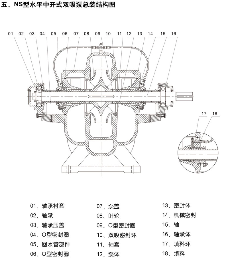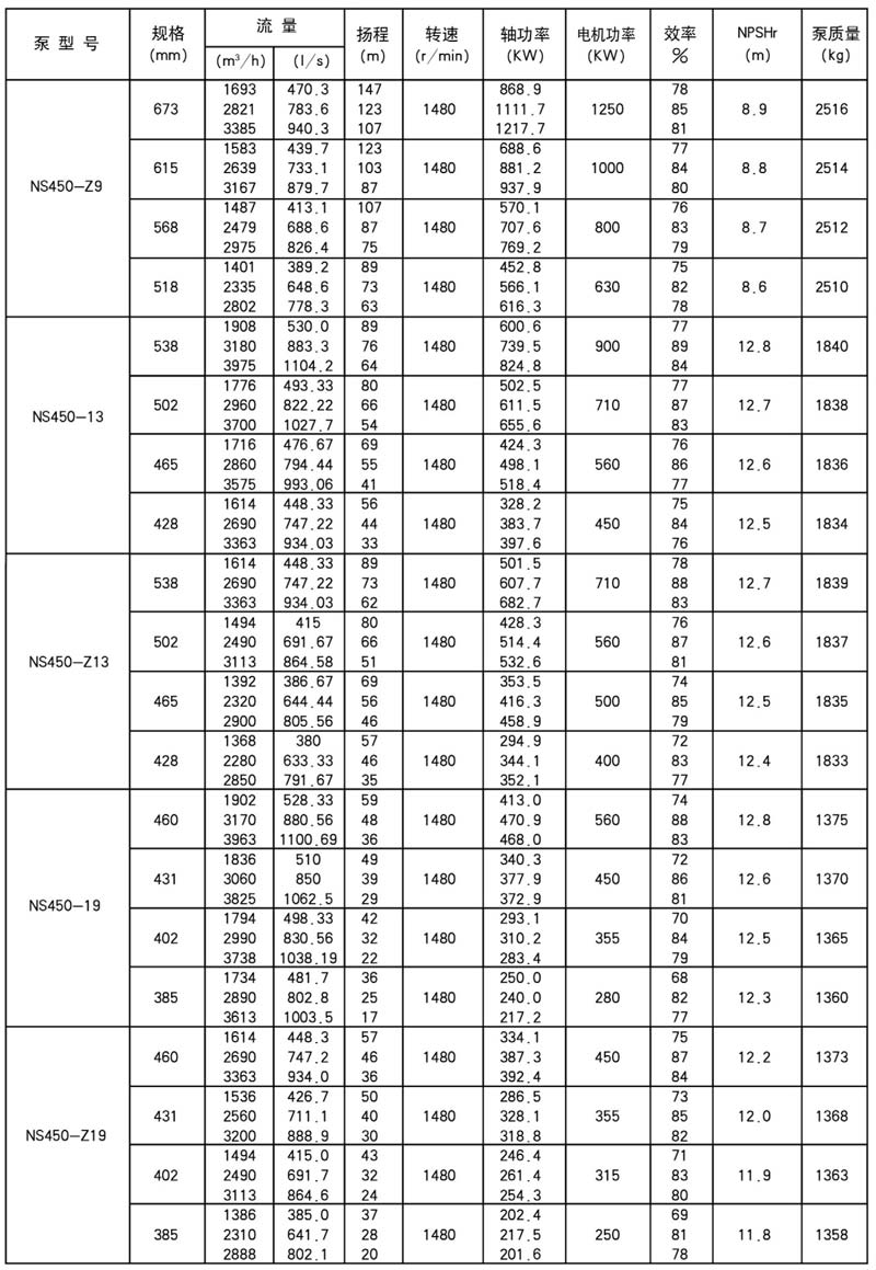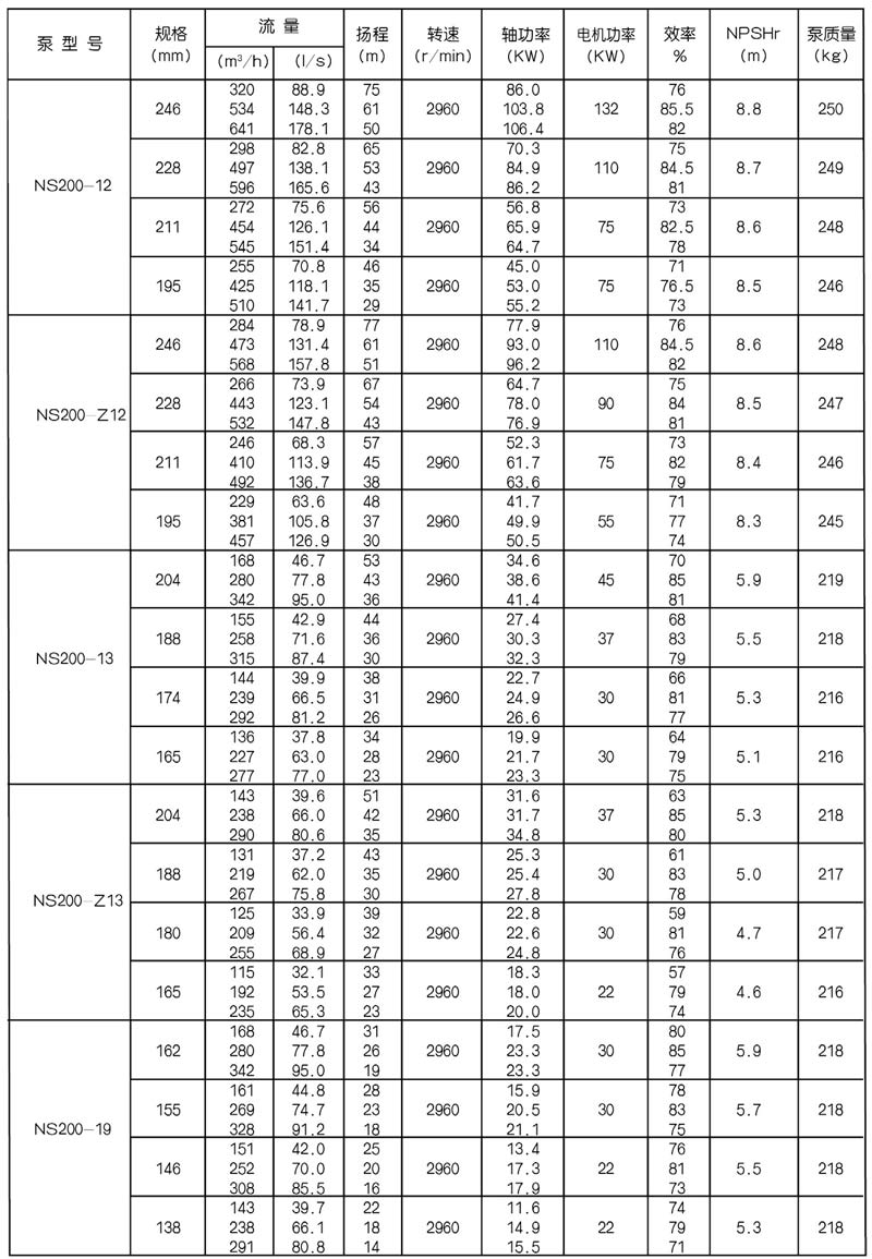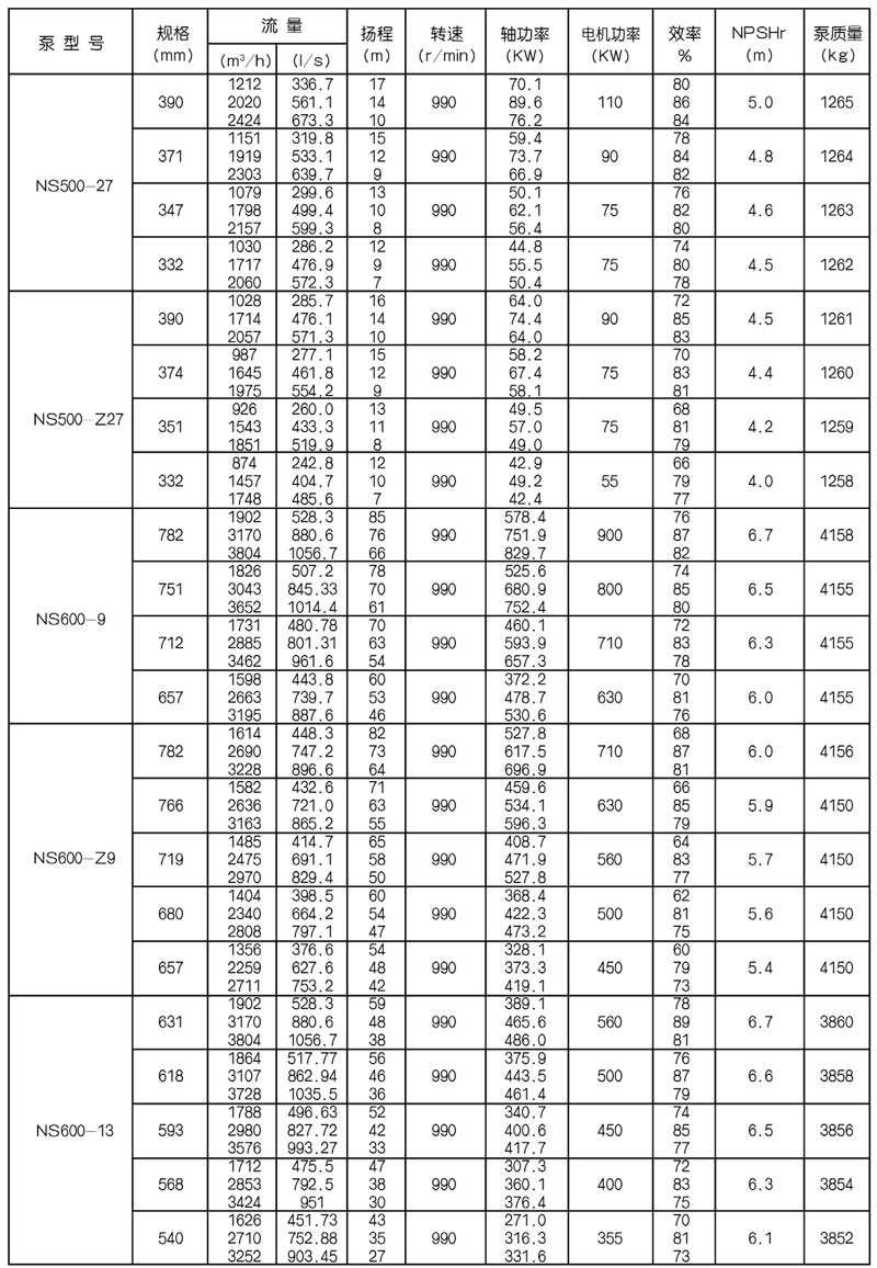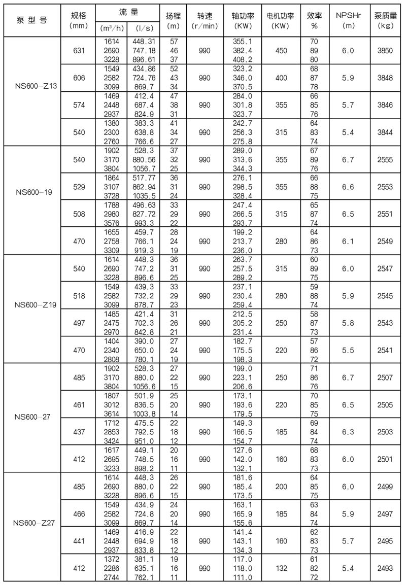 NS型單級雙吸中開式離心泵是我公司總結(jié)國內(nèi)外優(yōu)秀水力模型,廣泛吸收國內(nèi)外同類產(chǎn)品先進的設(shè)計制造技術(shù),根據(jù)國內(nèi)市場實際需要開發(fā)的新型中開式雙吸泵。全系列泵型譜內(nèi)各型號規(guī)劃更加科學(xué)合理,高揚程雙吸泵可以代替部分多級泵,大流量雙吸泵可以代替部分混流泵,優(yōu)化匹配各水力尺寸,汽蝕和效率兼顧,滿足GB/T19762能效評價值,達到節(jié)能目標(biāo)。結(jié)構(gòu)再創(chuàng)新,運轉(zhuǎn)可靠維護方便、延長使用壽命,使中開式雙吸離心泵優(yōu)秀泵型發(fā)揮更大效益。我公司目前生產(chǎn)的雙吸泵有46種型號,390個規(guī)格,處于節(jié)能和使用性能范圍考慮,一個型號有兩種葉輪,叫標(biāo)準(zhǔn)葉輪和窄葉輪,以更優(yōu)性能滿足使用工況要求。本系列泵符合ISO2548C、GB3216、GB/T5657標(biāo)準(zhǔn)。