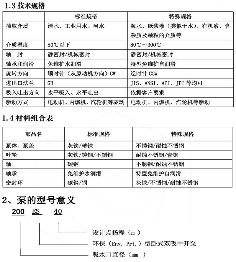 ES 系列環(huán)保免維護(hù)單級(jí)雙吸中開(kāi)臥式和立式離心泵,是我公司在總結(jié)多年雙吸泵制造及應(yīng)用經(jīng)驗(yàn)的基礎(chǔ)上,結(jié)合用戶(hù)在用泵過(guò)程中的痛點(diǎn),由公司專(zhuān)家與國(guó)內(nèi)外專(zhuān)家共同創(chuàng)造發(fā)明的一種新型水泵(臥式泵專(zhuān)利號(hào):ZL 201822092944.2;立式泵專(zhuān)利號(hào):ZL 2019 2 0293130.7)。其主要特點(diǎn)是環(huán)保、免維護(hù)。