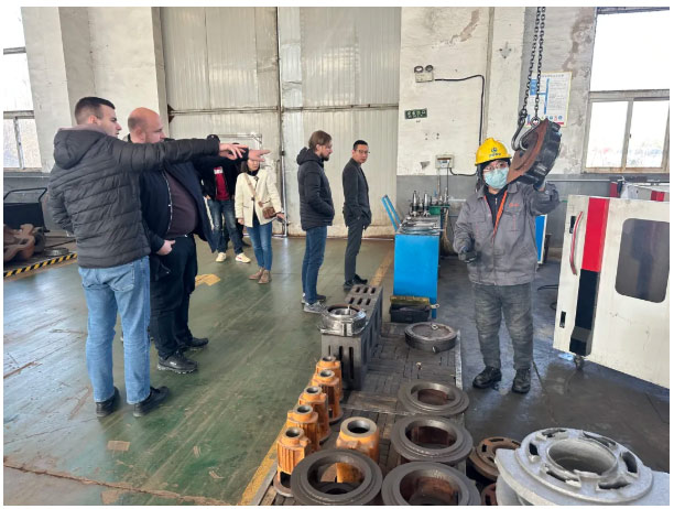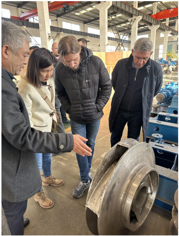 ?2023年11月24日,山東淄泵泵業(yè)有限公司迎來了一批來自俄羅斯的外賓,他們對該企業(yè)的水泵生產(chǎn)情況進(jìn)行了實(shí)地考察。在參觀過程中,淄泵泵業(yè)董事長(魏復(fù)興)魏總與俄羅斯外賓以及NSⅡ新型泵合影留念。同時,魏總還向俄羅斯外賓介紹了各種型號水泵以及葉輪配件等相關(guān)情況。此外,帶領(lǐng)貴賓參觀了車間內(nèi)的機(jī)械加工區(qū)域。