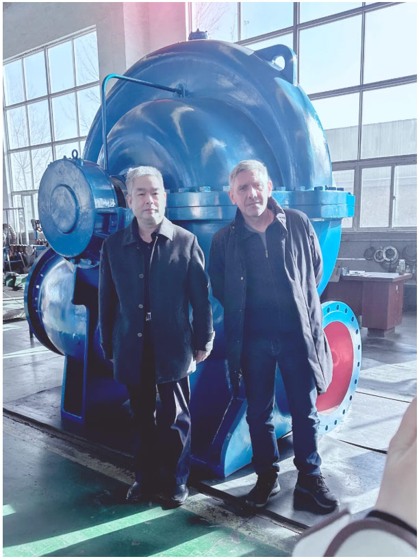 淄泵泵業(yè)董事長(魏復(fù)興)與俄羅斯外賓在NSⅡ型臥式雙吸中開泵前合影留念