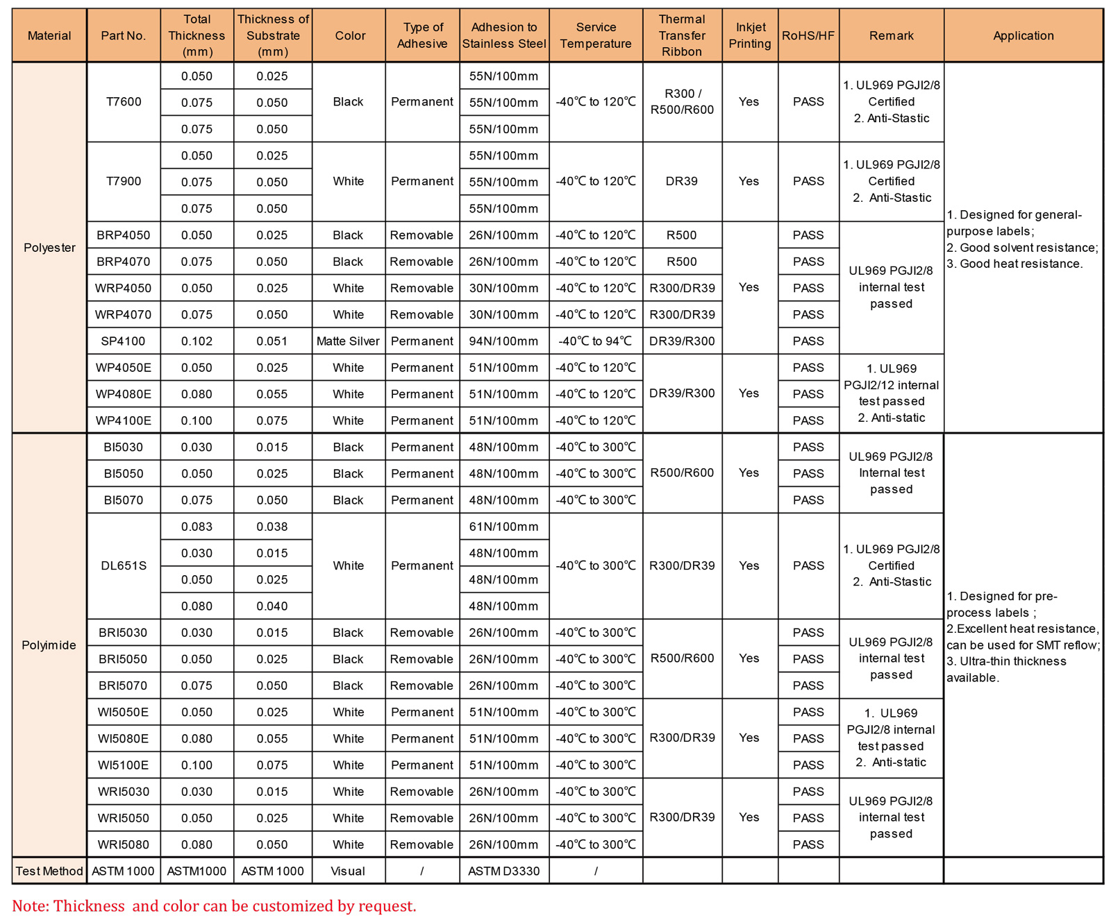 TM標簽材料適用于熱轉(zhuǎn)印且耐久性好,設計用于需要良好的耐溶劑性、耐熱性和耐磨性的線標記和柔性標簽應用。" />